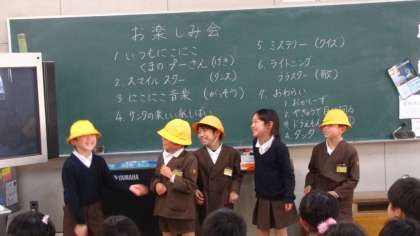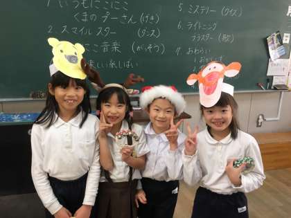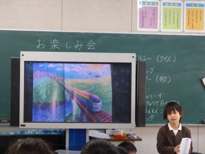 クラスで2学期お楽しみ会をしました。劇やクイズ、歌やお笑いなどグループで考えて練習してきました。本番では発表する人も見ている人もとても楽しい時間を過ごすことができました。発表が終わった後は、笑顔いっぱいです。