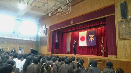 「無事に今日の終業式を迎えられたことに感謝して、来年の始業式にはみんなでまた無事に集まれるようにしよう」などのお話しを校長が行いました。