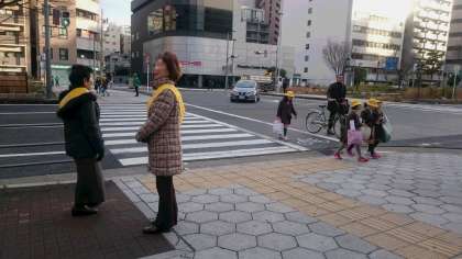 笑顔で登校している児童が多かった、3学期初日の登校の様子です。