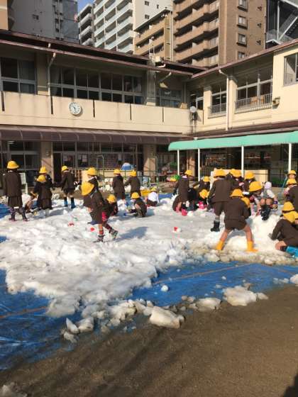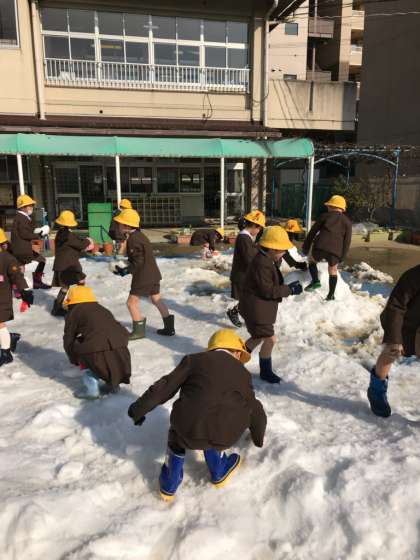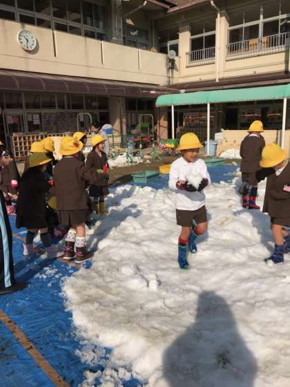 1年生が幼稚園の雪遊びの残雪で遊びました。
