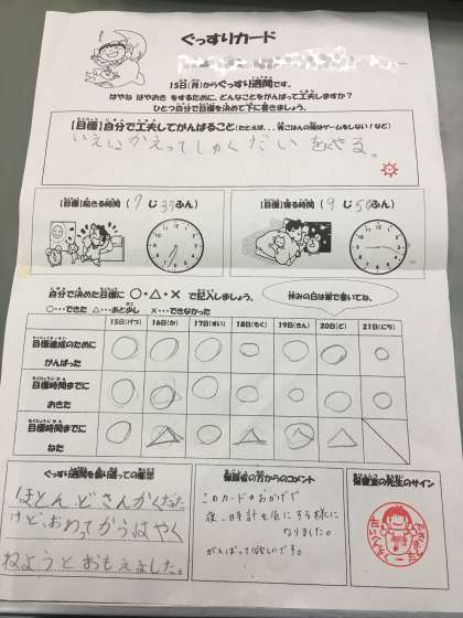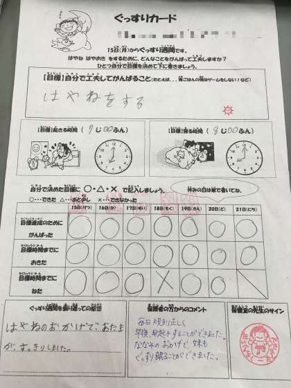 先週の睡眠強調週間で「ぐっすりカード」を記入し