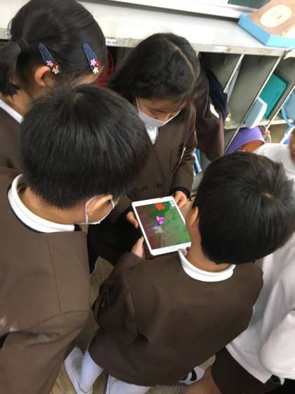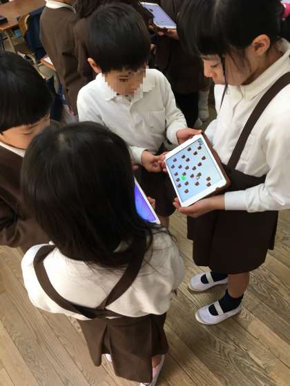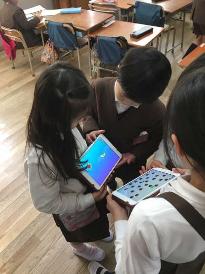 プログラミングアプリを使って、友達と協力して作品を作りました。
