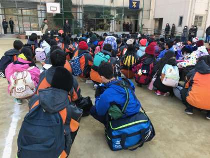 寒い朝となりましたが、6年生が六甲人口スキー場に出発しました。