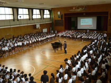 今年のみんなの歌は、「うたよありがとう」です。今日は、初めて全員で合わせて歌いました。