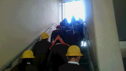 幼稚園と6年生は外階段を使って避難します。