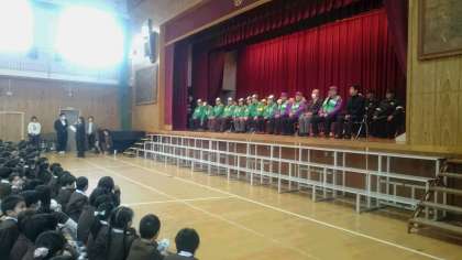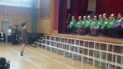 いつもお世話になっている、見守り隊の皆様方に児童がお礼をお伝えしました。