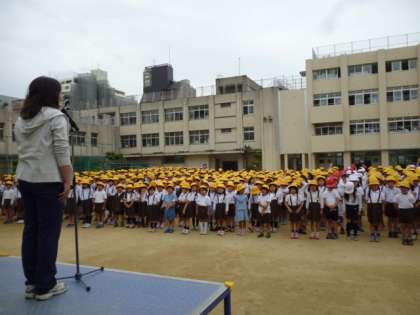 今日は昼から雨模様です。朝会はなんとか校庭でできたけど、5年生の社会見学が心配です。