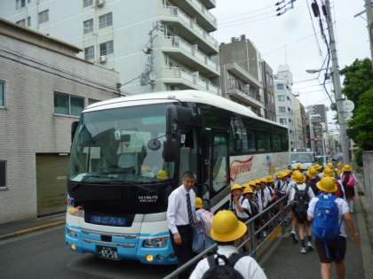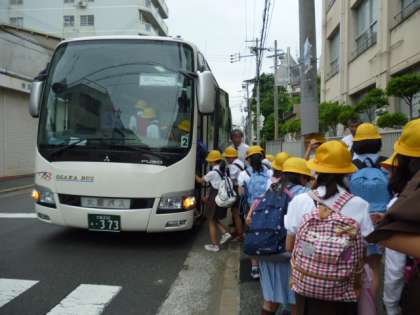 午前10時10分、5年生が、伊丹空港とダイハツ池田工場へバスで社会見学に出発しました。少し雨が降ってきましたが、みんな元気に出発しました。