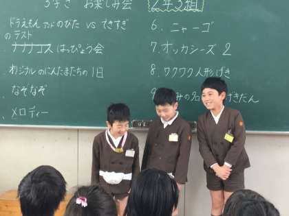 劇やダンスやお笑いなど、2年生最後のお楽しみ会を全員で楽しむことができました。