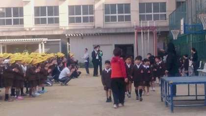 1年生が拍手で在校生に迎えられました。