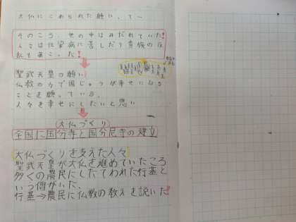 社会科の学習では、単元のまとめのノートつくりをしています。