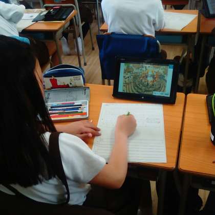 タブレットを使い、学習します。