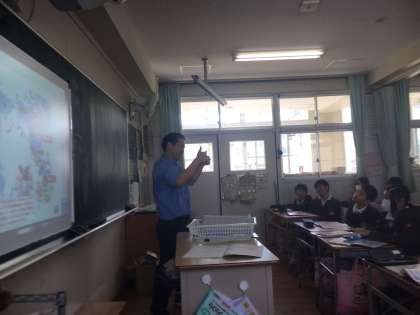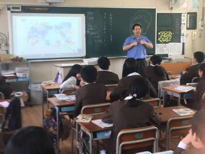 先生の自己紹介を聞いたり、好きなものを当てたりしました。