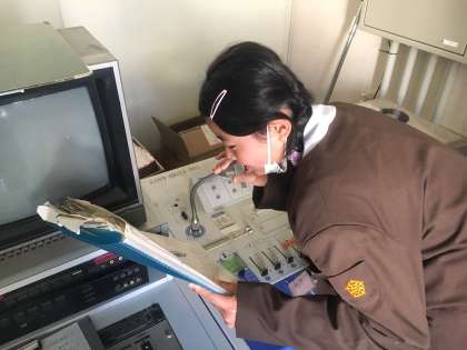 写真は、放送委員会の活動の様子です。