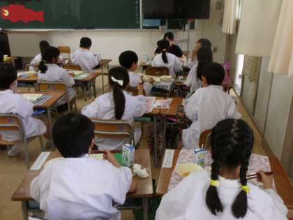 給食時間・・・1年生の教室・・・