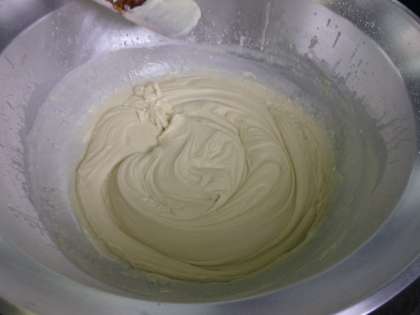 給食のクリームシチューのルウは、手作りです。バター、サラダ油で小麦粉をていねいにいためて作ります。