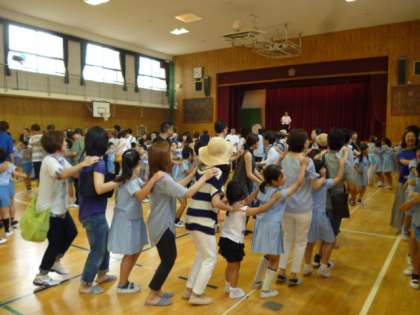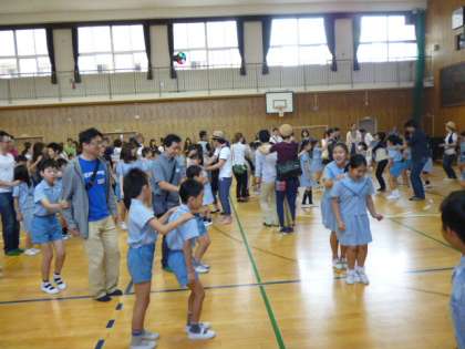 1限目に4年生の保護者の方と児童が楽しくレクレーションを楽しみました。
