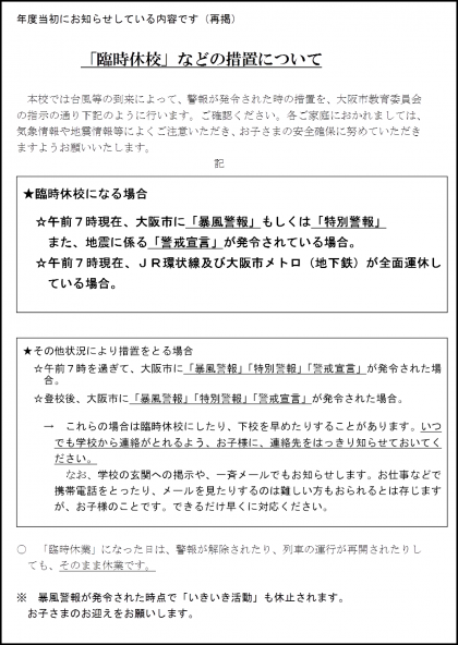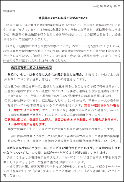 地震等における本校の対応について