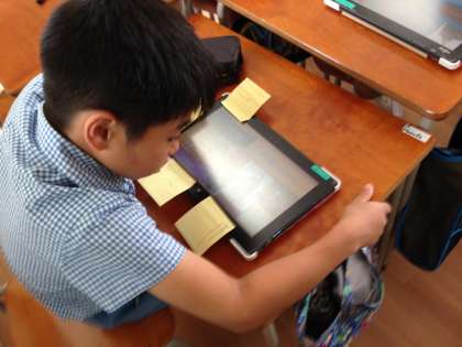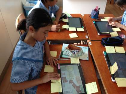 タブレットを使って、自分の調べた時代についてプレゼンを作りました。