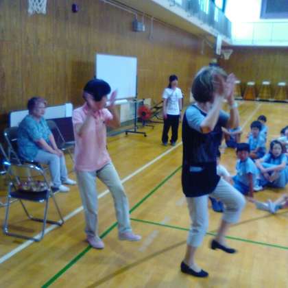 堀江女性会の方に来ていただき、ふれあい演技の「河内音頭」の指導をしていただきました。