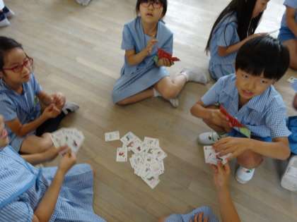 トランプや都道府県カルタ、国旗カルタ、百人一首、読書など、それぞれ楽しんで活動していました。それも真剣な顔で!!