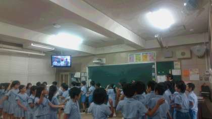 各クラスで、テレビ放送を見て踊りの練習をしました。