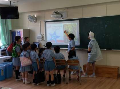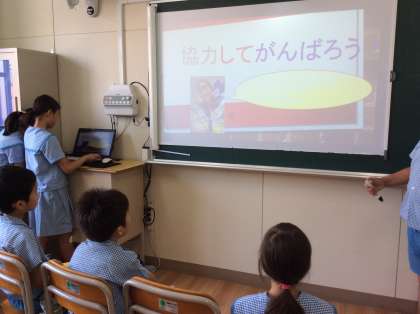 なかよし祭りでは、タブレットや電子黒板を活用してルールの説明をしています。