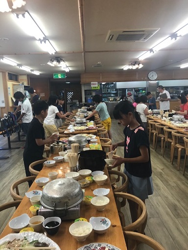 夕食の準備を食事係が協力して行います。