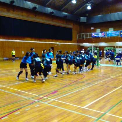 堀江小学校PTAバレーボール部は、西中学校PTAと対戦しました。