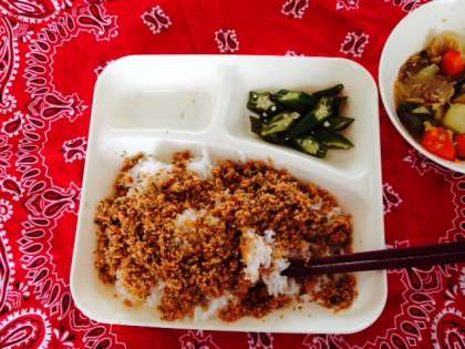 今日の給食。紅鮭そぼろ。ご飯にかけて大満足。