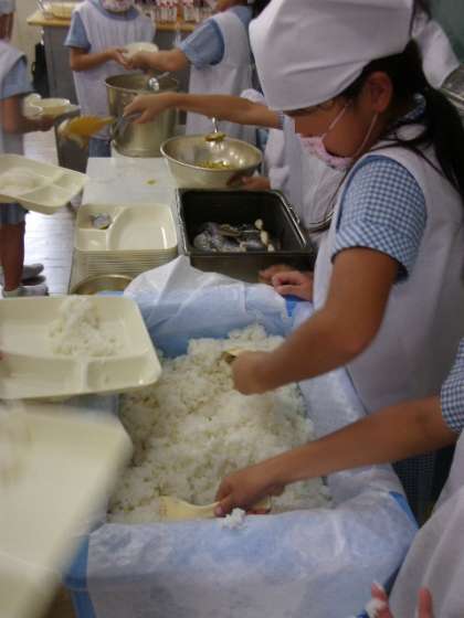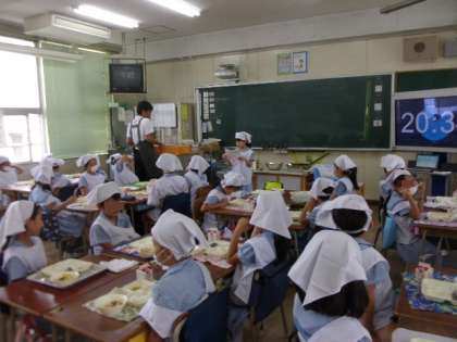 給食時間・・・2年生の教室・・・