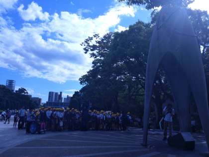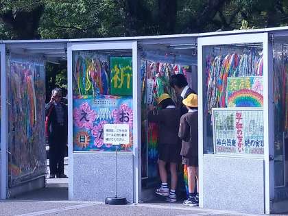 平和の子の像の前で平和の願いを込めて折った折鶴をささげました。
