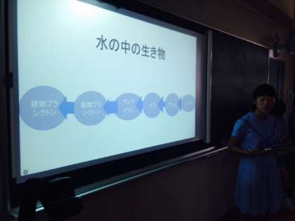 調べたことをまとめ全員が食物連鎖について、プレゼンをしました。