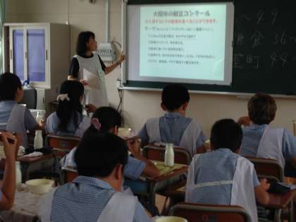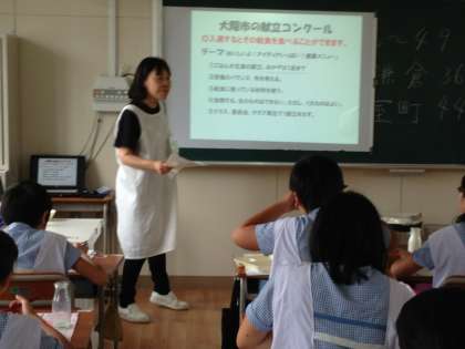 栄養教諭の先生が、夏休みの給食献立コンクールの応募についての説明に来てくださいました。