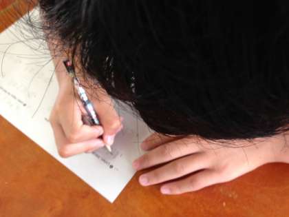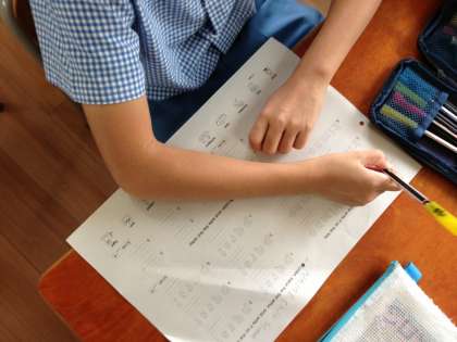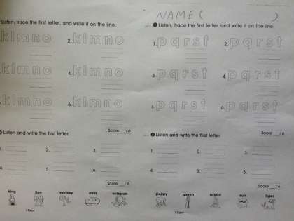 今日のグローバルタイムは、音声教材を聞いて、問題に答えています。