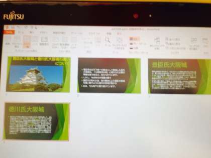 今日は、大阪城について調べ、歴史の学習の復習もかねてパワーポイントにまとめました。