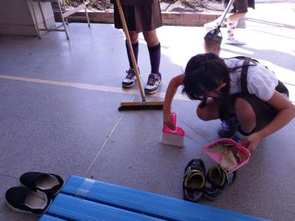 3年生が保健室前を掃除しています。