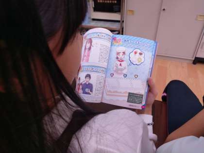 休み時間に保健室で5年生が心理テストの本を読んでいます。