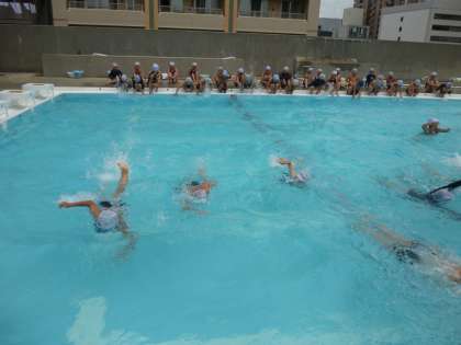 友達が25m泳ぎ切るたびに大歓声でした。