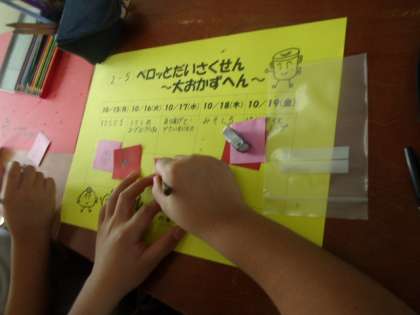 6時間目の委員会活動の時間、給食委員会では10月15日からの1週間で行う「ペロッと大作戦」の準備をしました。2学期は、大おかずをクラスで空っぽにするとシールがはれます。担当のクラスの台紙とかわいいシールを作りました。とても楽しい1時間でした。