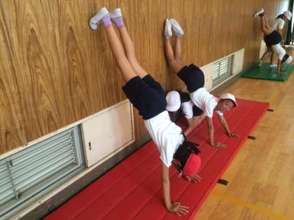 体育の学習では、倒立の練習をしました。