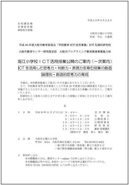 平成30年11月17日(土)に第3回ICT公開授業を行います。