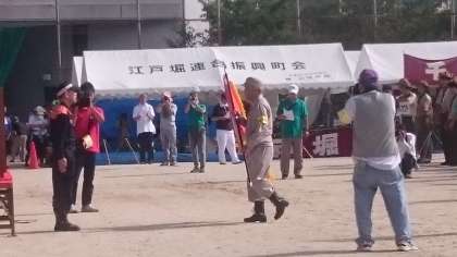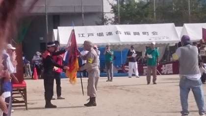 2年連続、防災の部で優勝した堀江連合が優勝旗を返納されました。