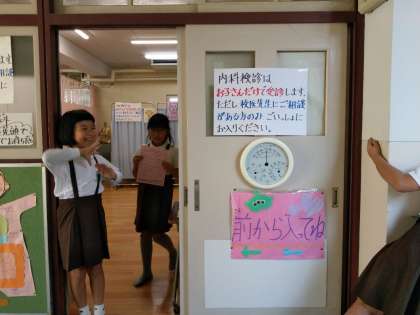 5年生が来年度入学予定の子どもと保護者の方にあいさつをしている様子です。