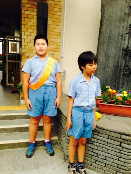 生活安全委員の人は、当番の時、校門に立ち朝の挨拶運動をしています。