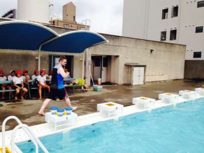 クリントン先生の英語の指示に従って、泳ぐ練習に慣れてきました。