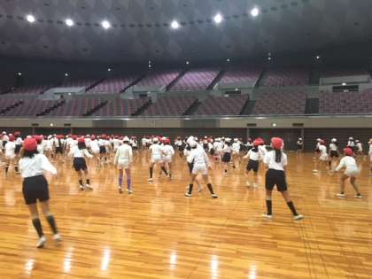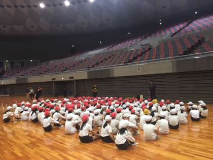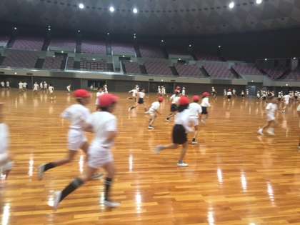 中央体育館でともえおに、リレー、ボール回しなどさまざまな活動を行いました。