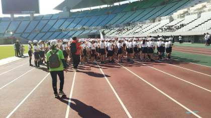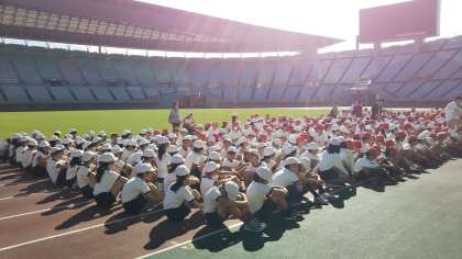 西区の小学校8校の6年生で、長居陸上競技場(ヤンマースタジアム長居)にてスポーツ交歓会を行いました。