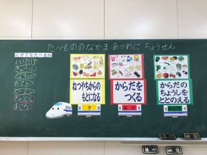 本日、食育指導がありました。黄・赤・緑の食品をバランスよく食べることで健康で大きな体に成長できることを学びました。みんな、楽しみながらも一生懸命考えることができました。