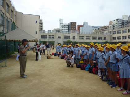 早朝より、5年生118名全員が参加して出発式を行いました。